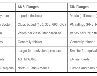 Comparison Table: DIN vs ANSI Flanges